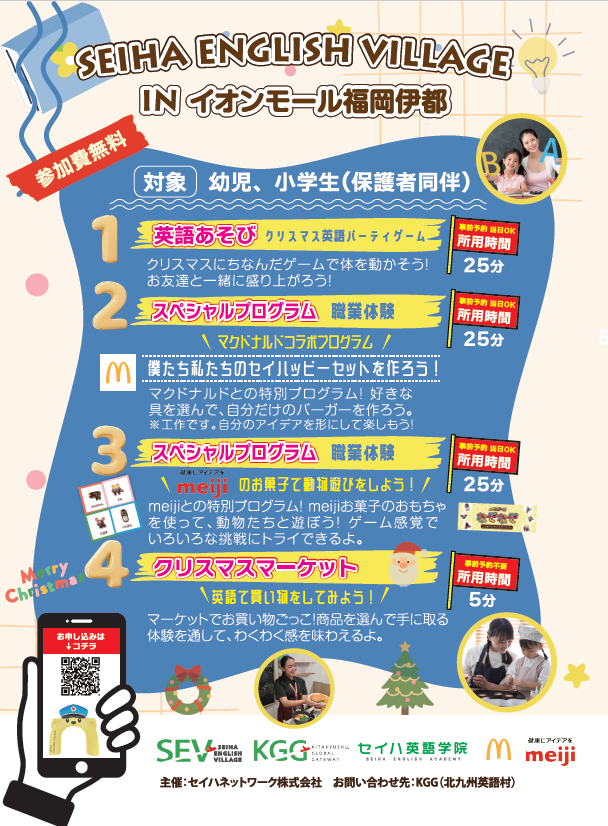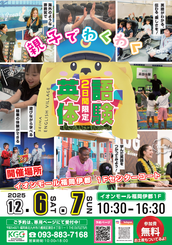 12月6日㈯・7日㈰ イオンモール福岡伊都にて、無料の英語体験イベントが開催されます。
