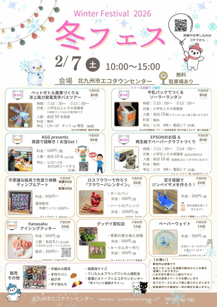 2月7日㈯ 北九州市エコタウンセンターで開催される『Winter Festival 2026 冬フェス』にKGGのブースが出店します。